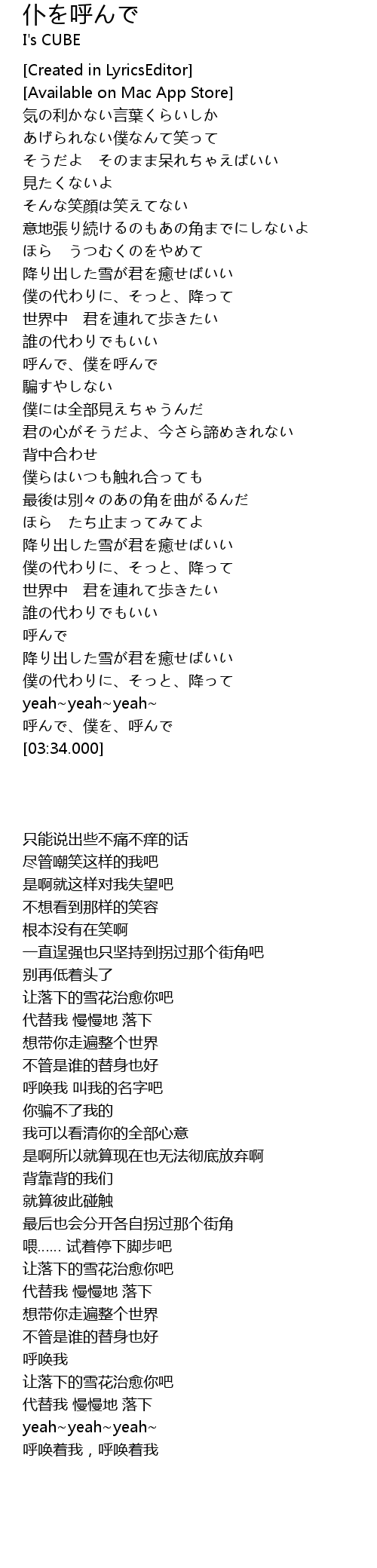 | [03:34.000] | 呼んで、僕を、呼んで |