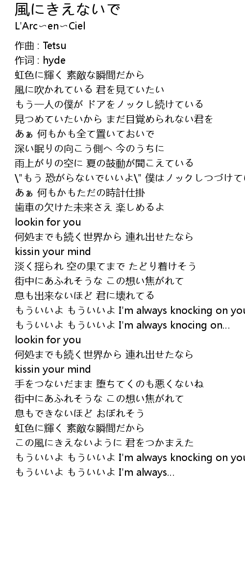 | もういいよ もういいよ I'm always knocking on your door | |