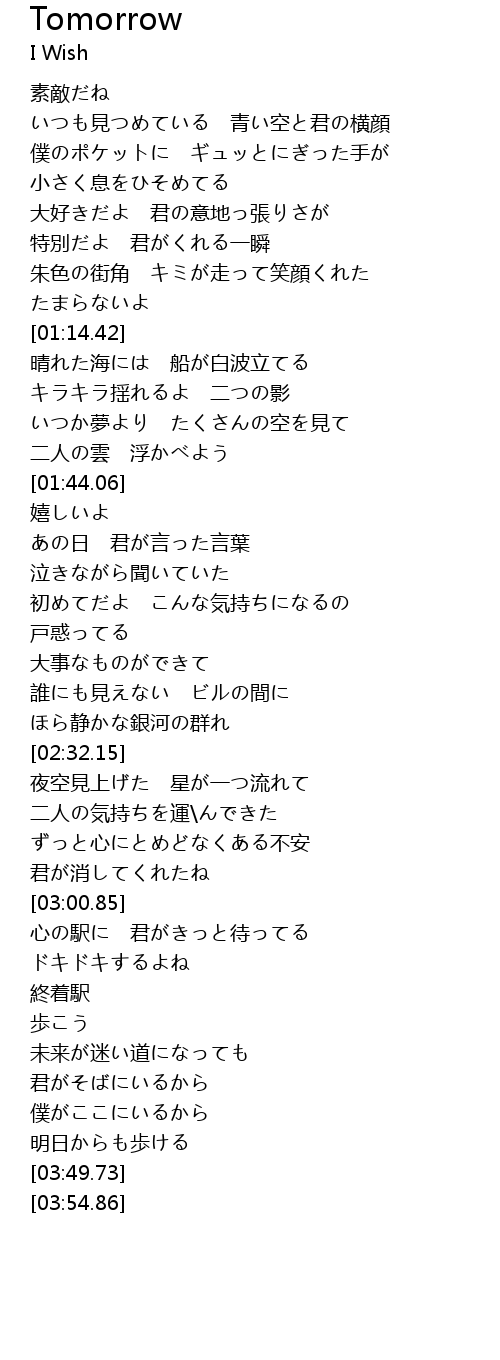 | [01:29.92] | いつか夢より たくさんの空を見て |