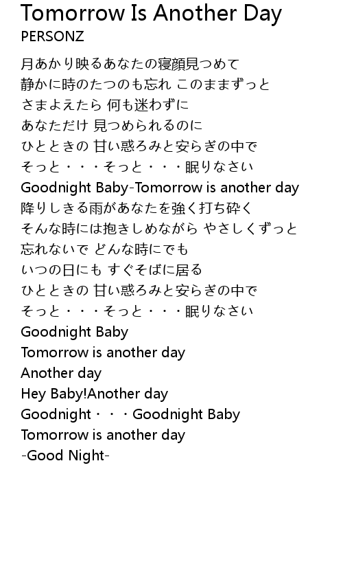 | Goodnight BabyTomorrow is another day | |