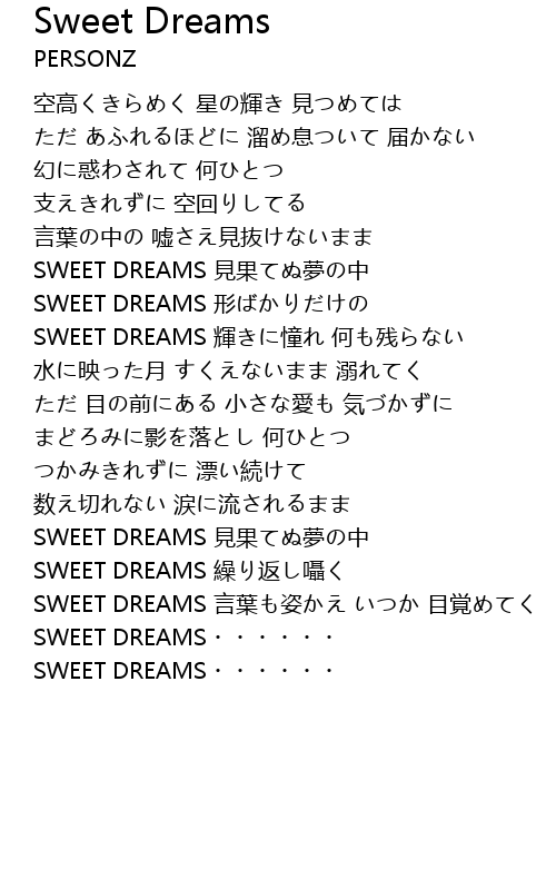 | SWEET DREAMS 言葉も姿かえ いつか 目覚めてく | |