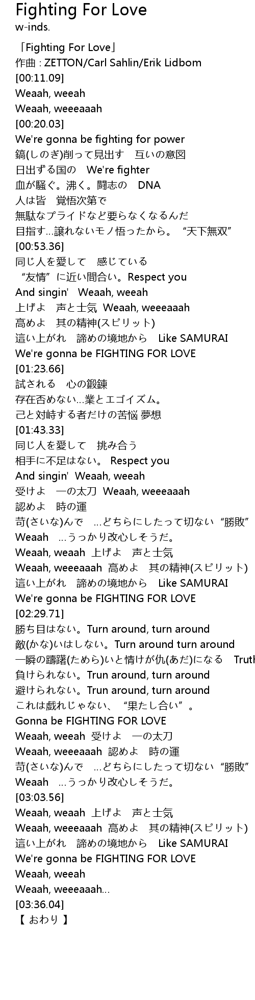 | [02:46.77] | Gonna be FIGHTING FOR LOVE |