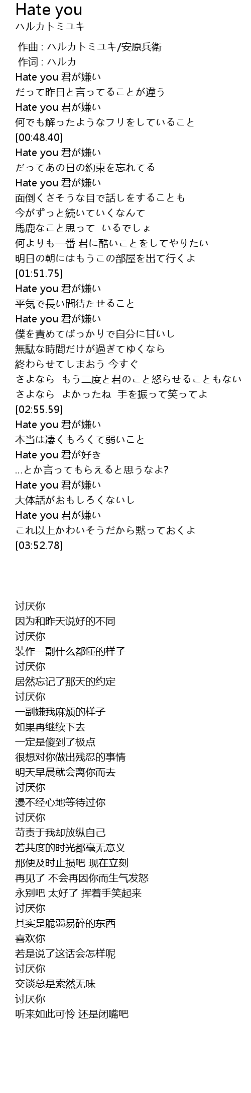 [03:32.49] Hate you 君が嫌い