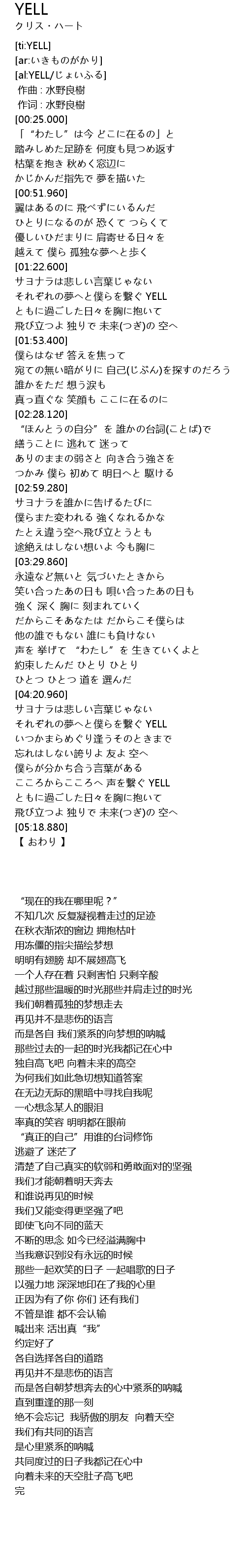 | [04:30.010] | それぞれの夢へと僕らを繋ぐ YELL |