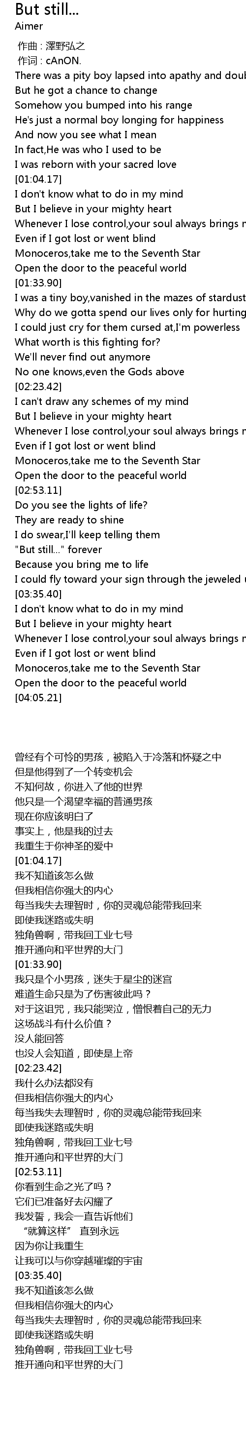 | [01:22.18] | Monoceros, take me to the Seventh Star |