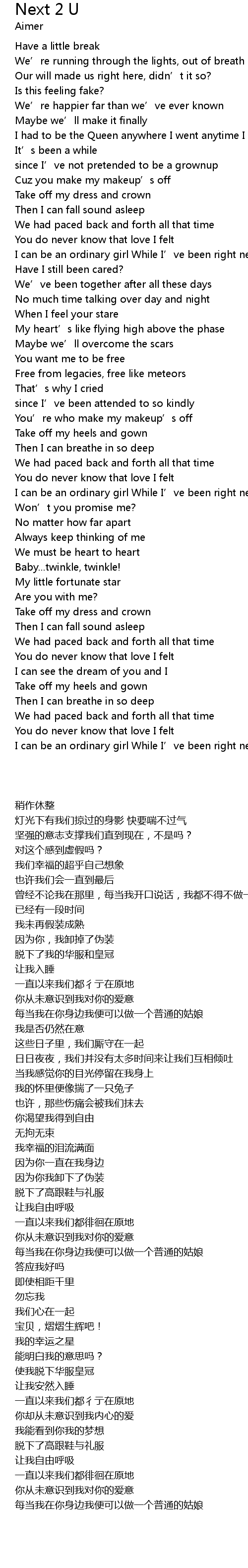 | [02:04.99] | You' re who make my makeup' s off |
