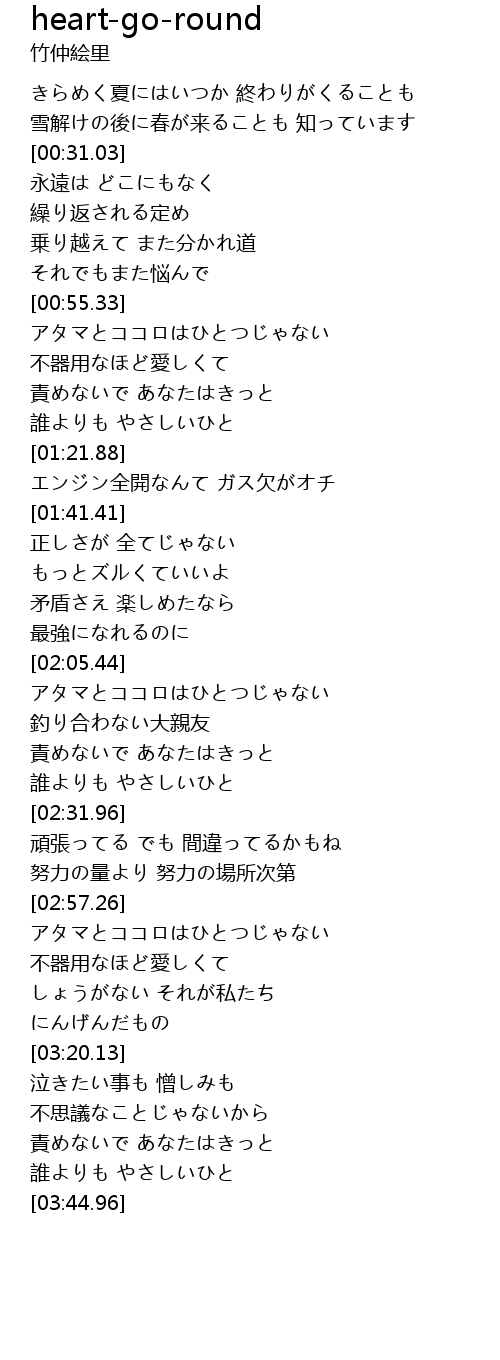 | [00:58.75] | アタマとココロはひとつじゃない |