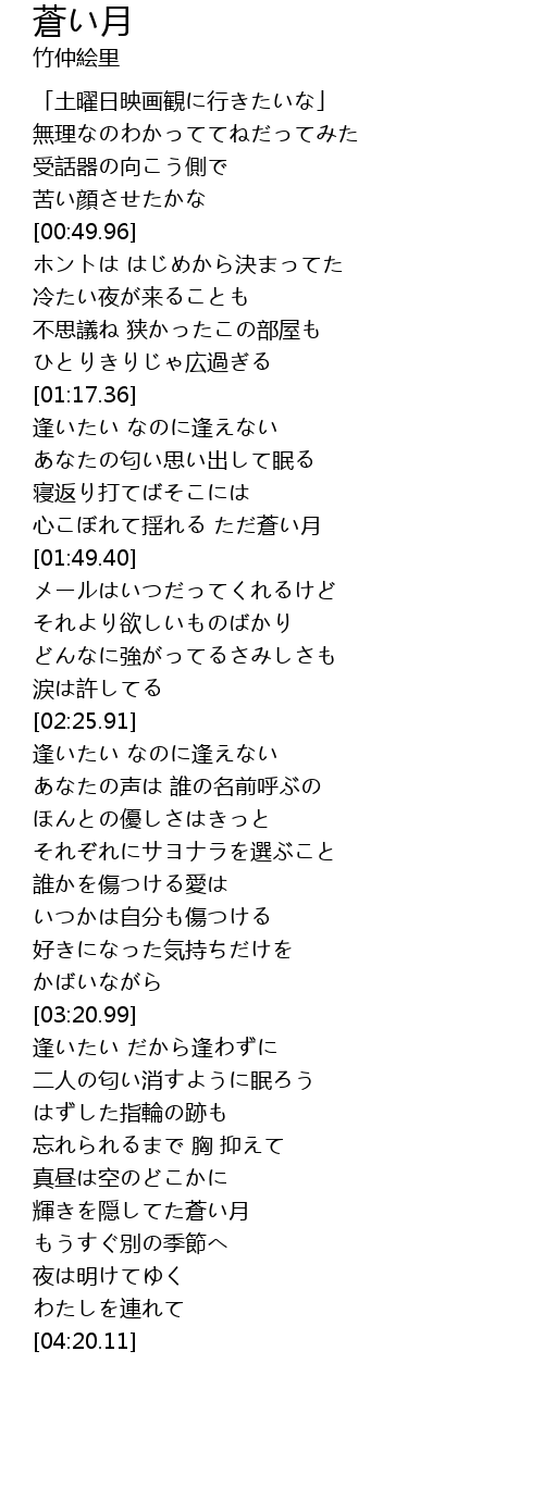| [03:53.35] | 輝きを隠してた蒼い月 |