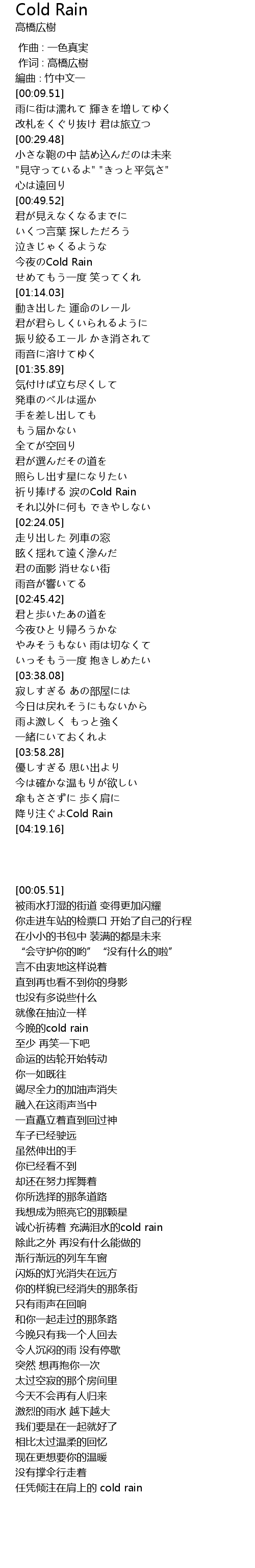 | [04:14.39] | 降り注ぐよCold Rain |