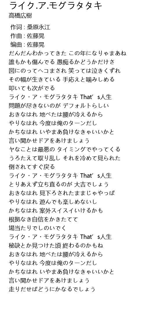 | [03:03.89] | ライク・ア・モグラタタキ That’s人生 |