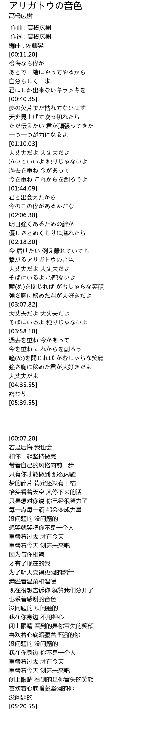| [00:07.20] | 編曲∶佐藤晃 |