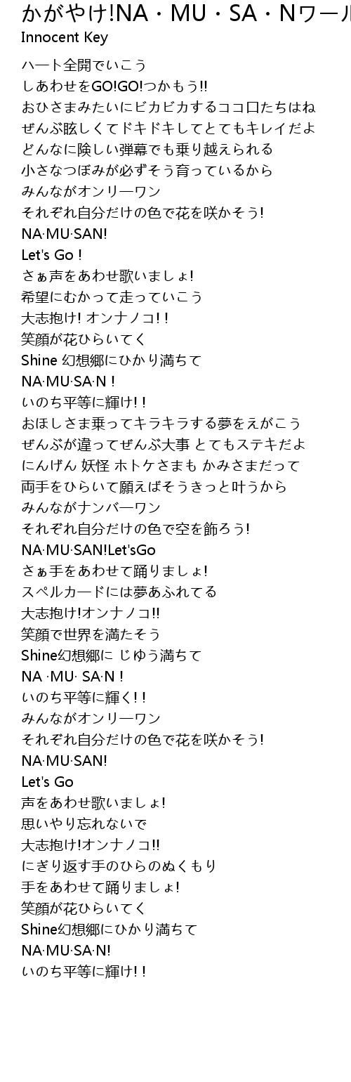 | [01:58.81] | NA·MU·SAN!Let'sGo |