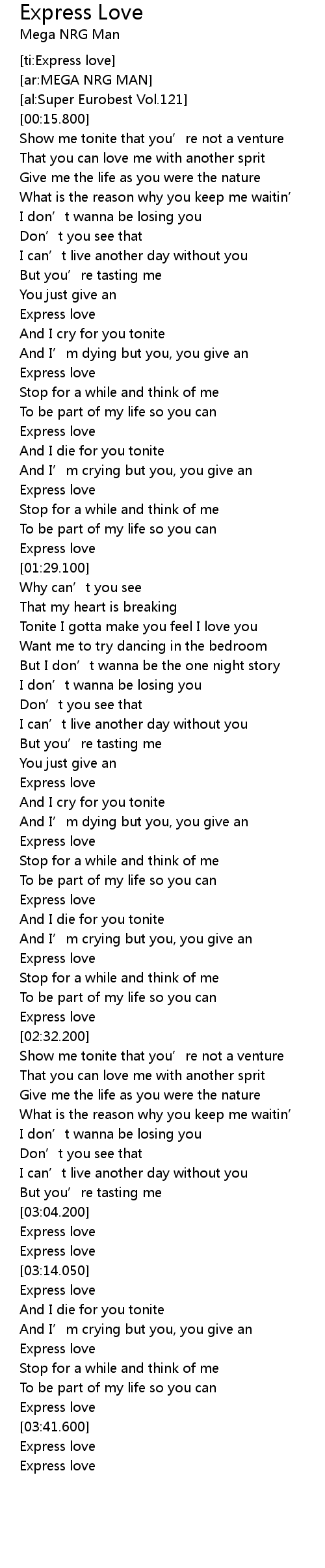 | [02:41.140] | Show me tonite that you' re not a venture |