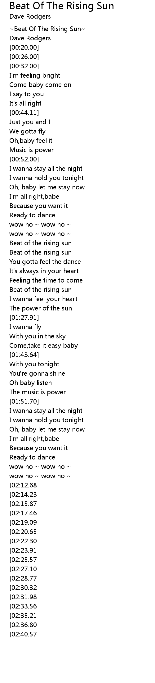 [03:20.34][02:27.10] Beat of the rising sun