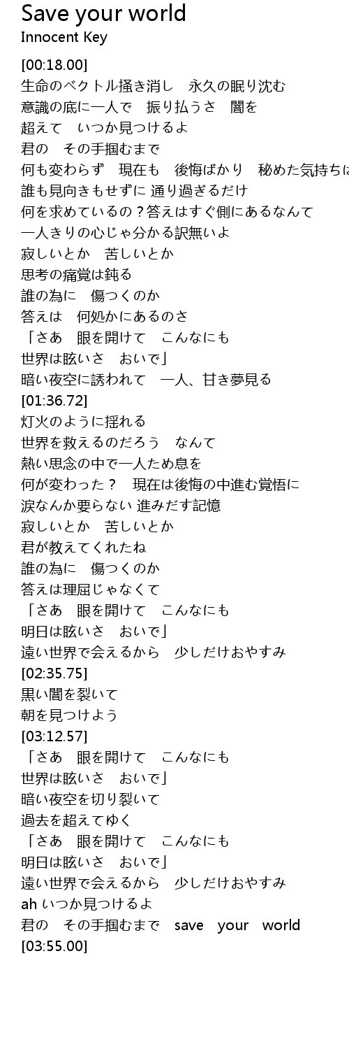 | [03:18.05] | 世界は眩いさ おいで」 |