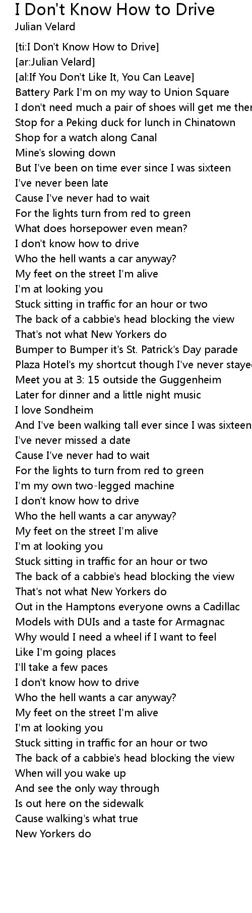 [ti:I Don't Know How to Drive] |