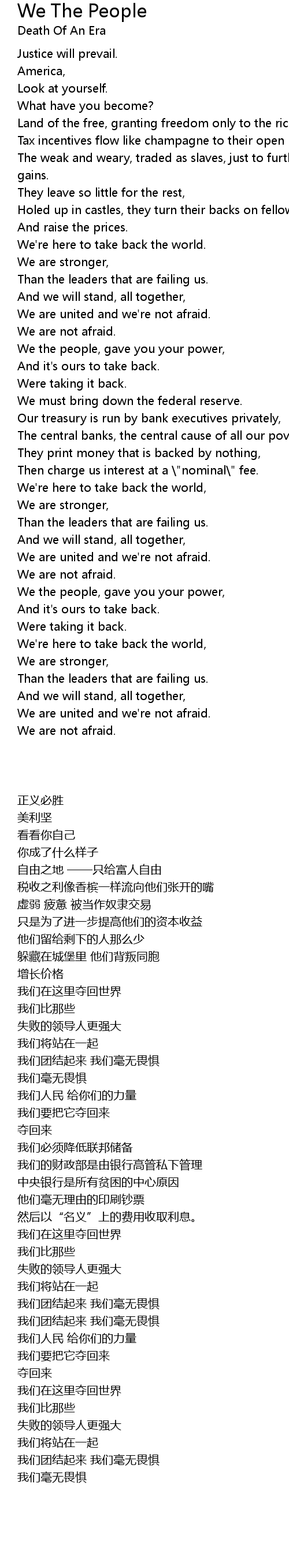 We must bring down the federal reserve. |
