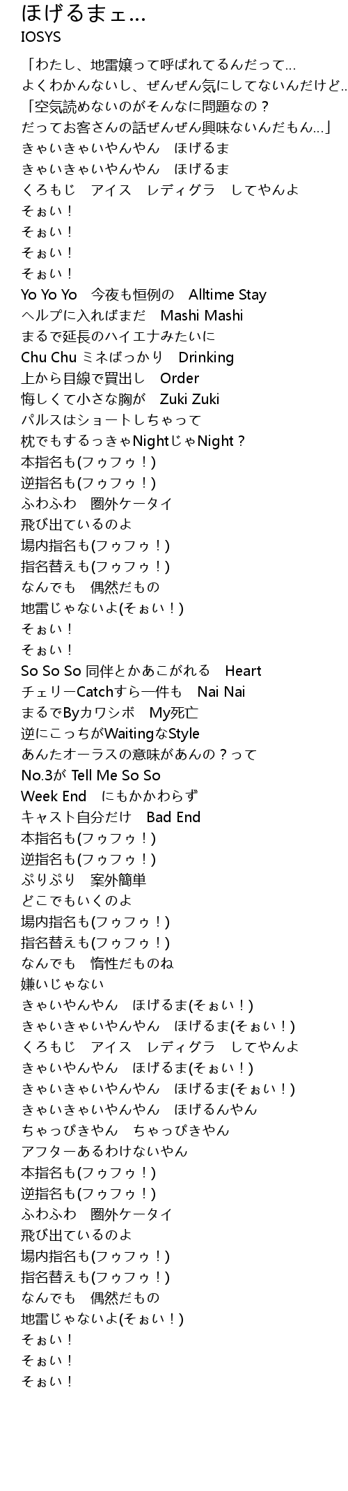 | [02:53.39] | きゃいきゃいやんやん ほげるま(そぉい!) |