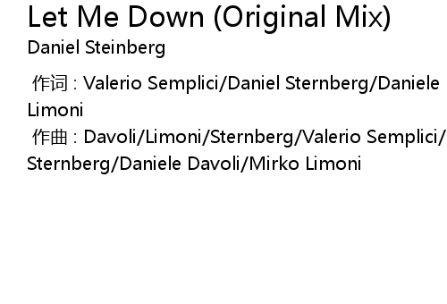 | Song | Let Me Down (Original Mix) |