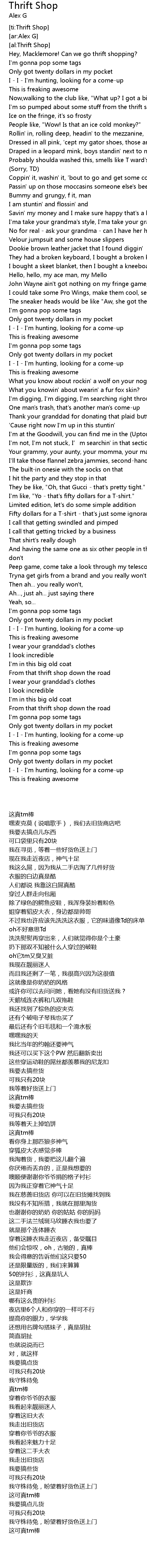 | [00:01.59] | Hey, Macklemore! Can we go thrift shopping? |