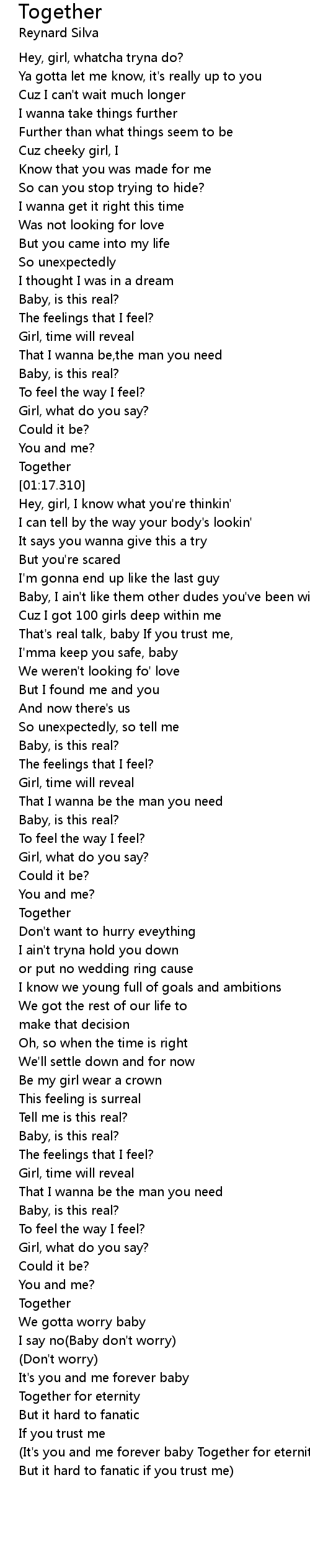 It's you and me forever baby |