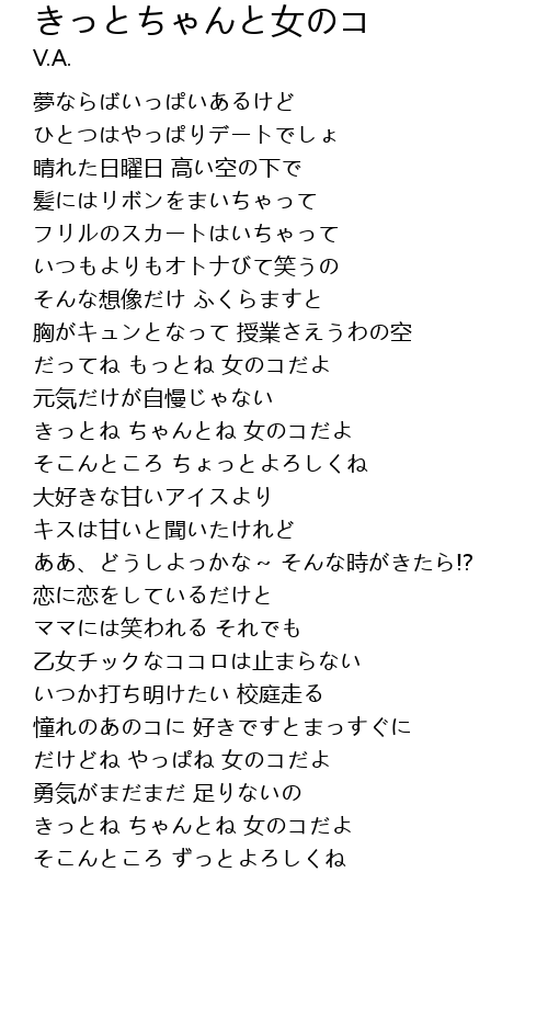 | [01:44.6] | きっとね ちゃんとね 女のコだよ |