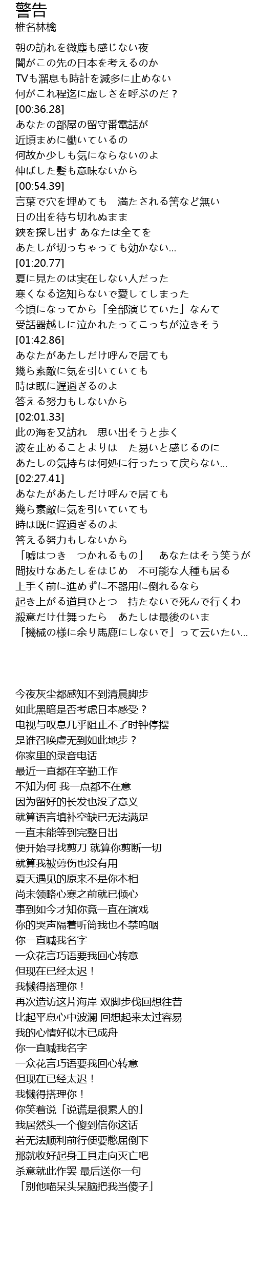 | [03:52.53] | 殺意だけ仕舞ったら あたしは最後のいま |
