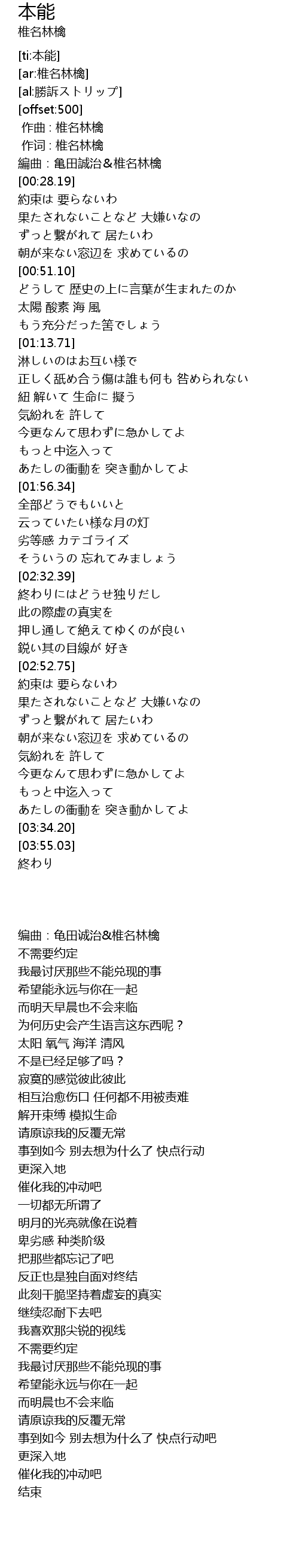 | [00:00.00] | 作曲 : 椎名林檎 |