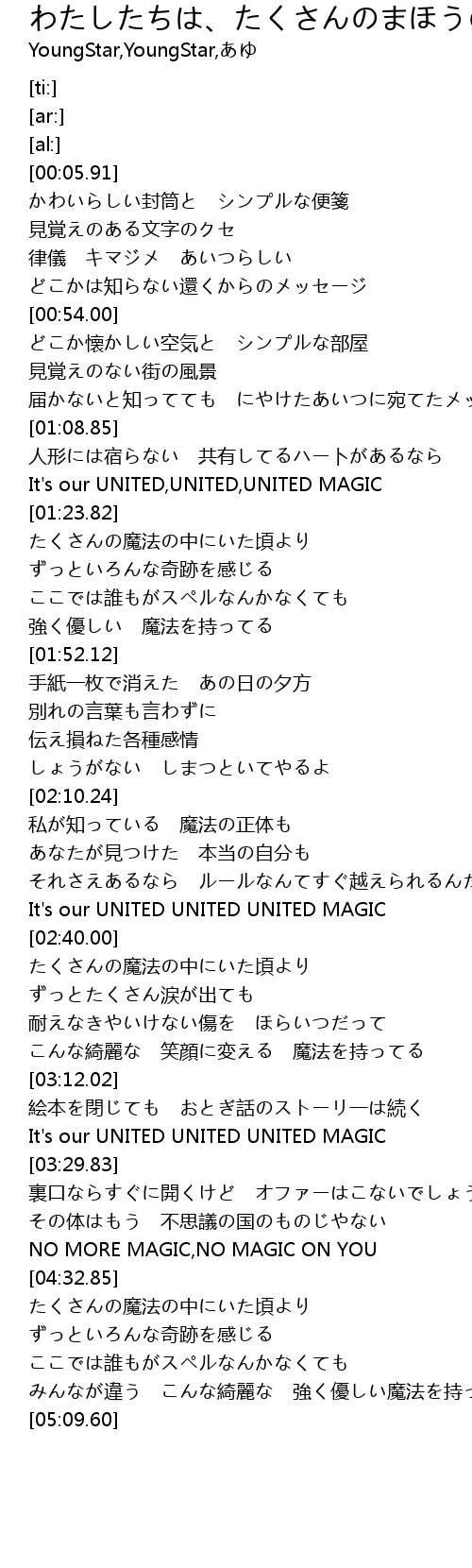 | [02:32.68] | It's our UNITED UNITED UNITED MAGIC |