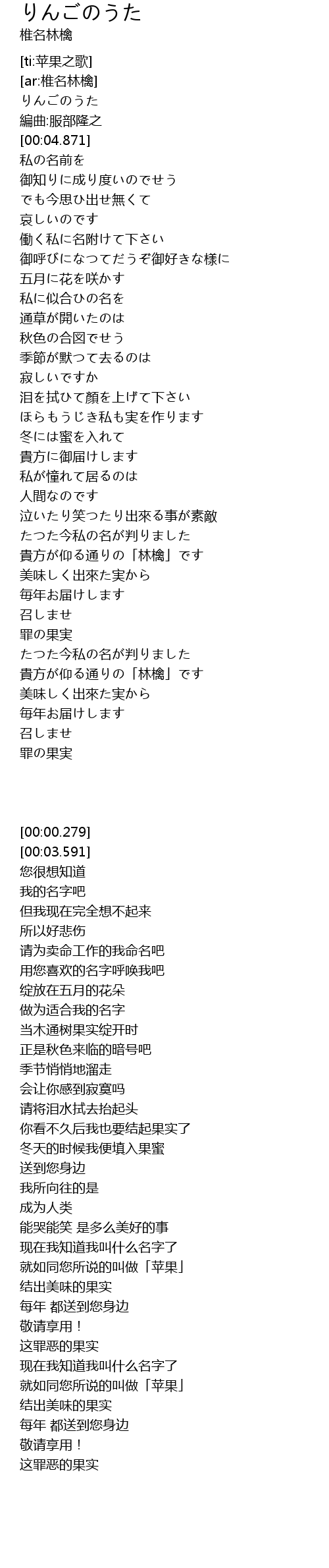 | [00:00.279] | りんごのうた |