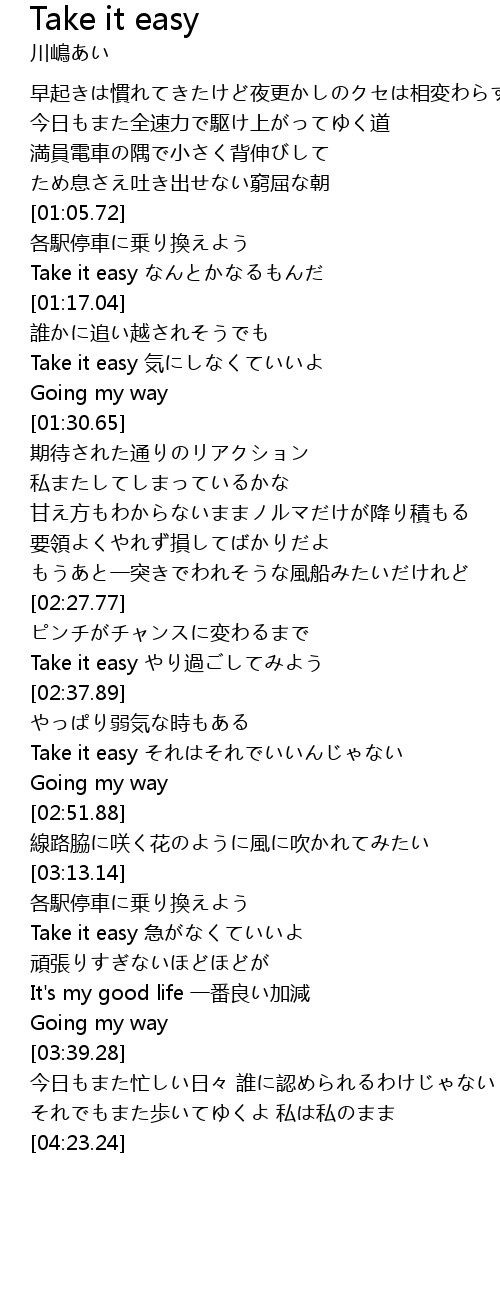 | [01:12.10] | Take it easy なんとかなるもんだ |