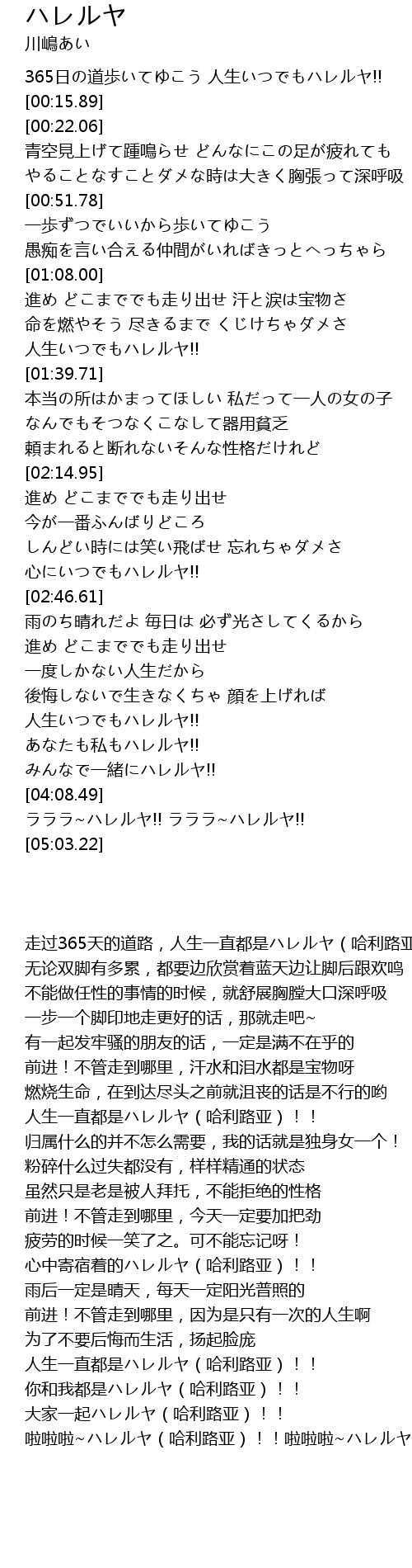| [00:00.00] | 365日の道歩いてゆこう 人生いつでもハレルヤ!! |