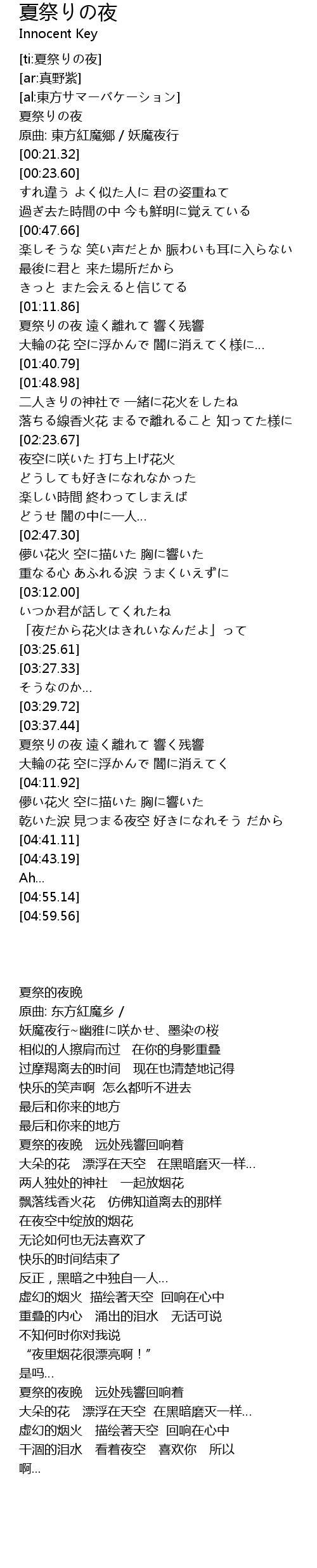 | [00:01.24] | 夏祭りの夜 |