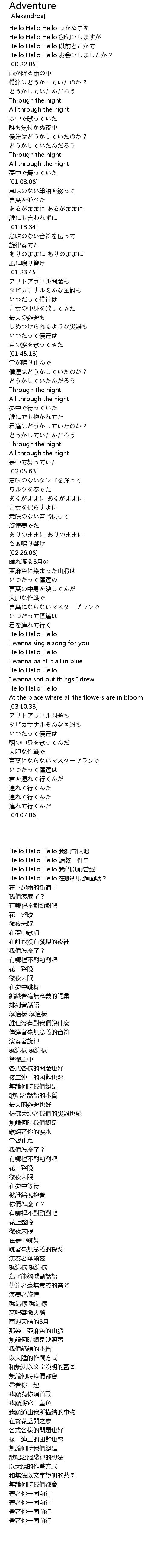 | [00:16.49] | Hello Hello Hello お会いしましたか? |