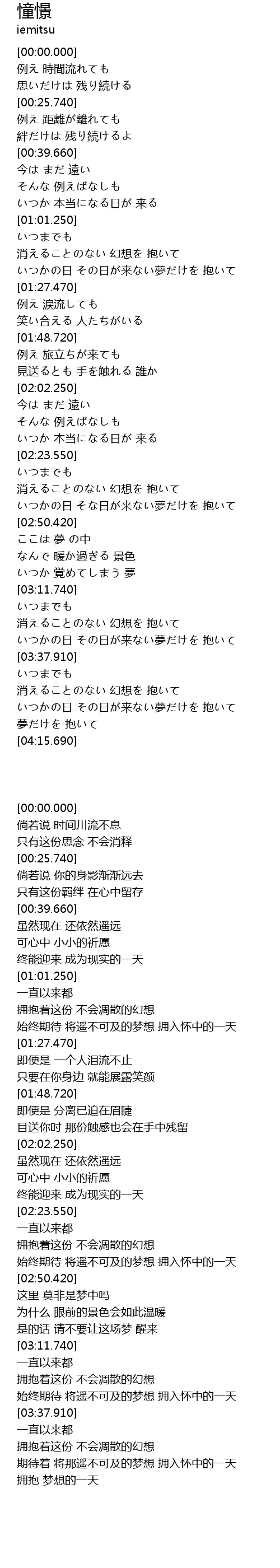 いつかの日 そな日が来ない夢だけを 抱いて |