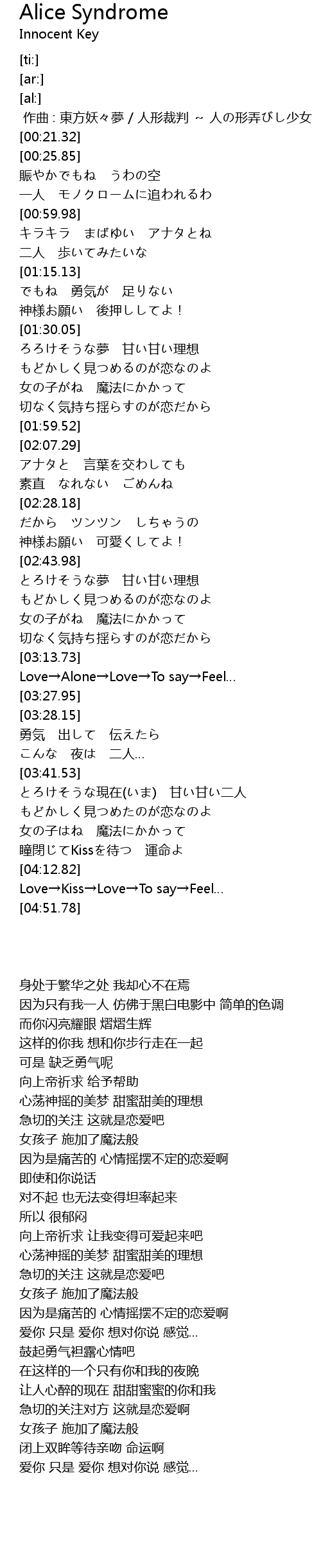 | [00:00.00] | 作曲 : 東方妖々夢 / 人形裁判 ~ 人の形弄びし少女 |