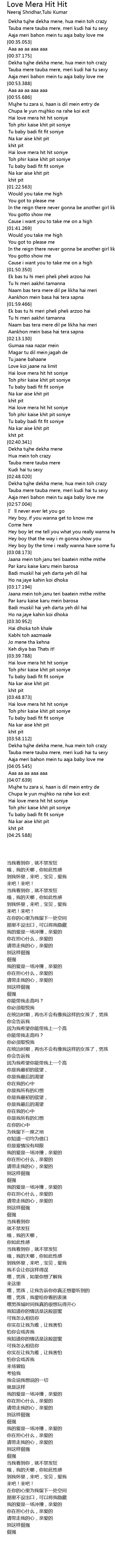 | [02:30.997] | Hai love mera hit hit soniye |