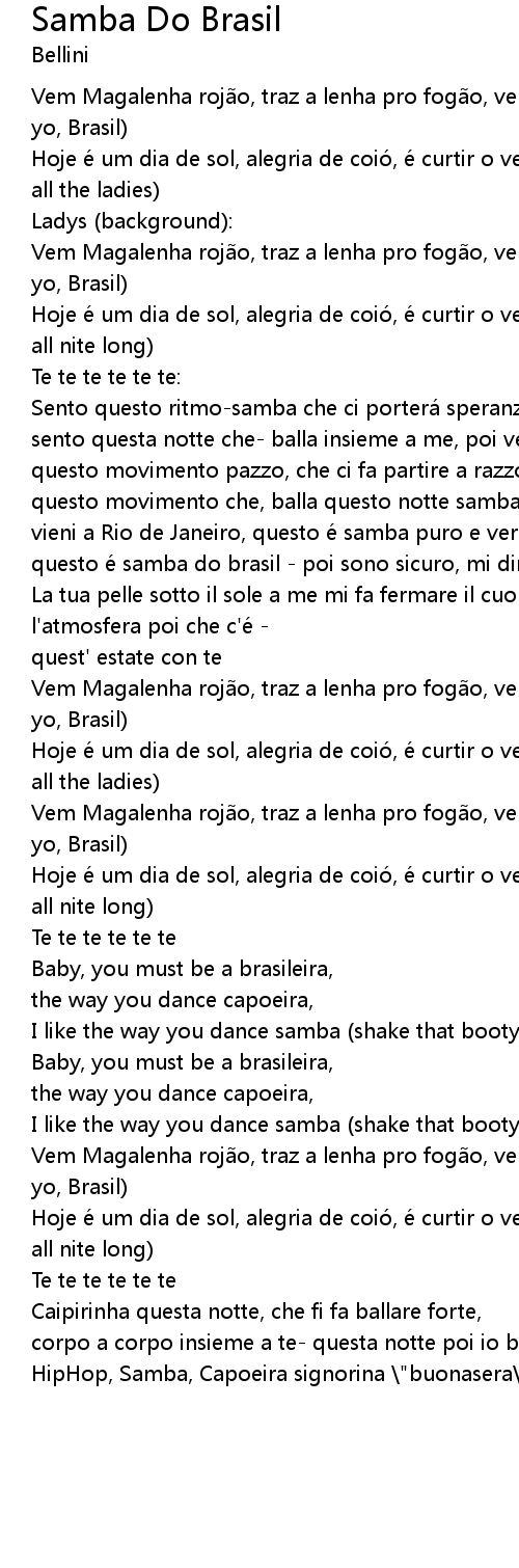 | questo é samba do brasil poi sono sicuro, mi dirai di si | |