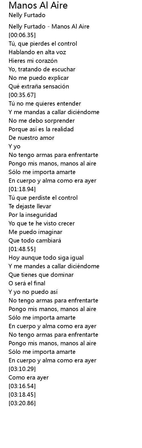| [00:04.66] | Nelly Furtado - Manos Al Aire |