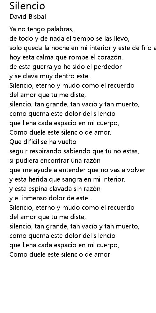 | Como duele este silencio de amor. | |
