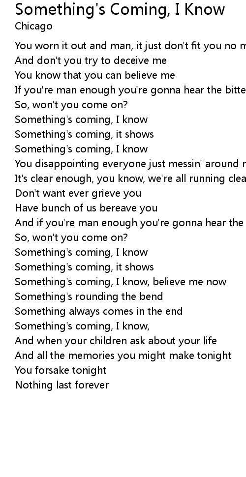 Something's coming, I know, |