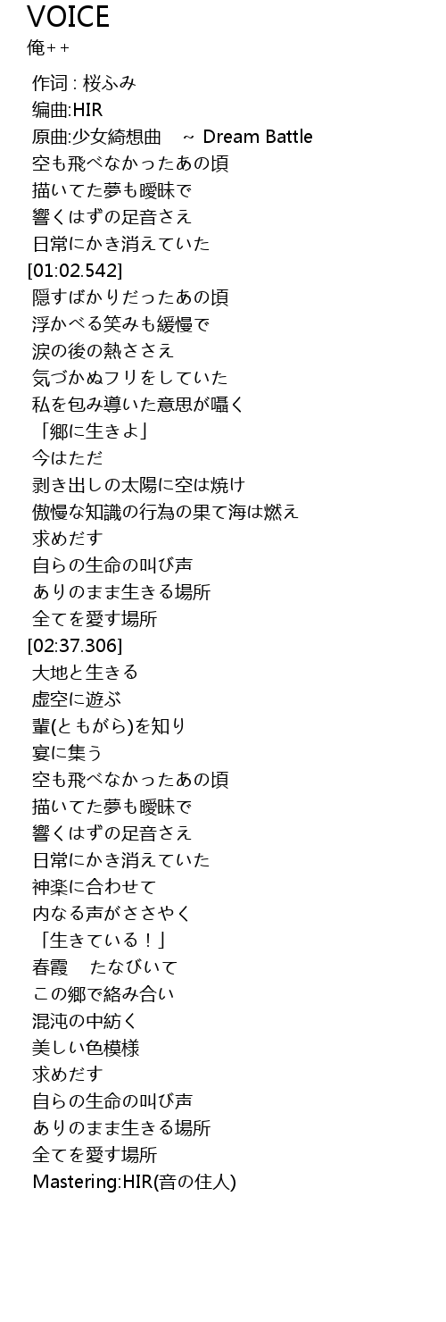 | [04:50.864] | Mastering:HIR(音の住人) |