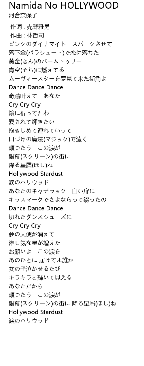 | [01:48.630] | 涙のハリウッド |