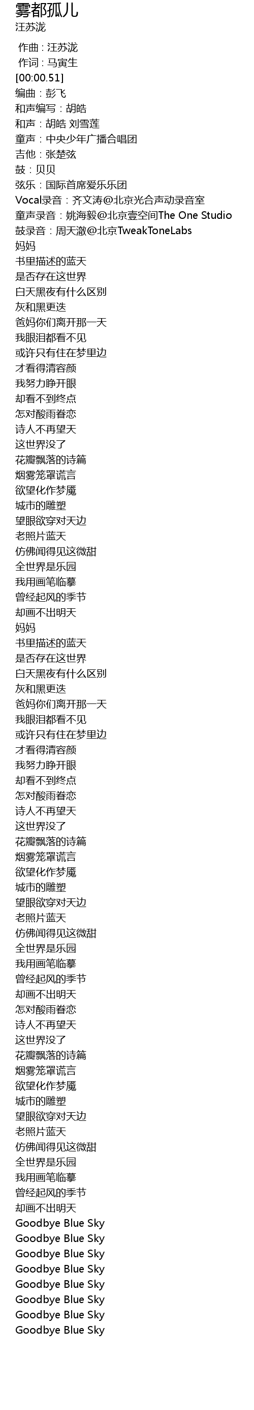 | [03:09.49] | Goodbye Blue Sky |