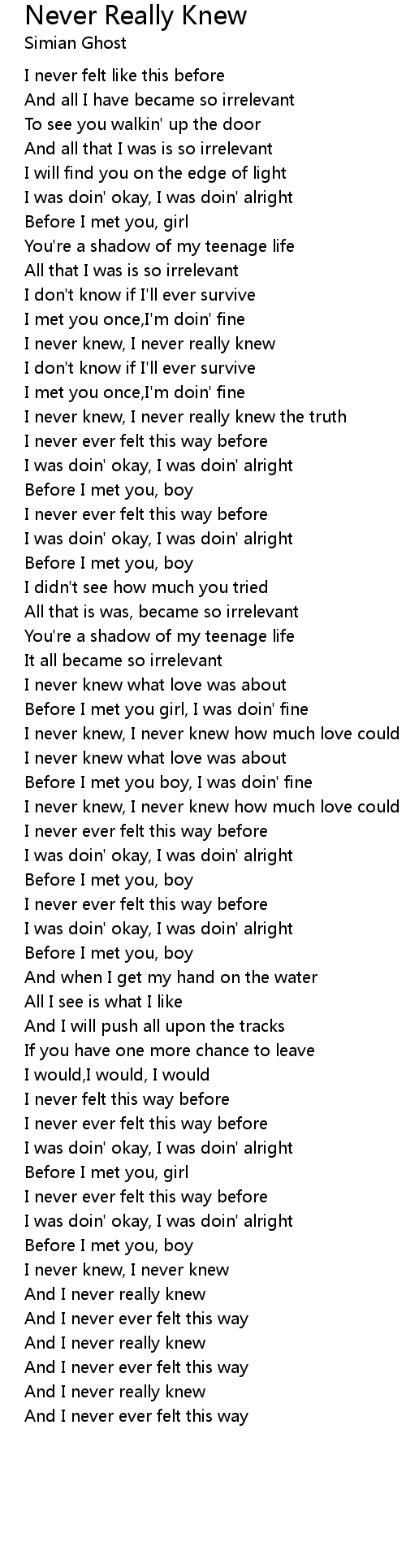 And I never really knew |