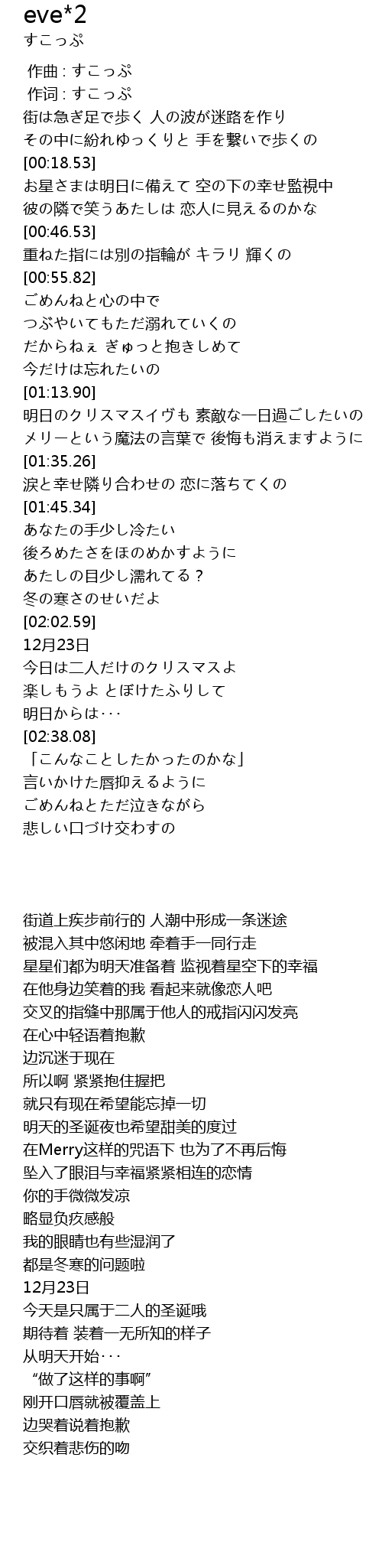 | [01:18.28] | 明日のクリスマスイヴも 素敵な一日過ごしたいの |
