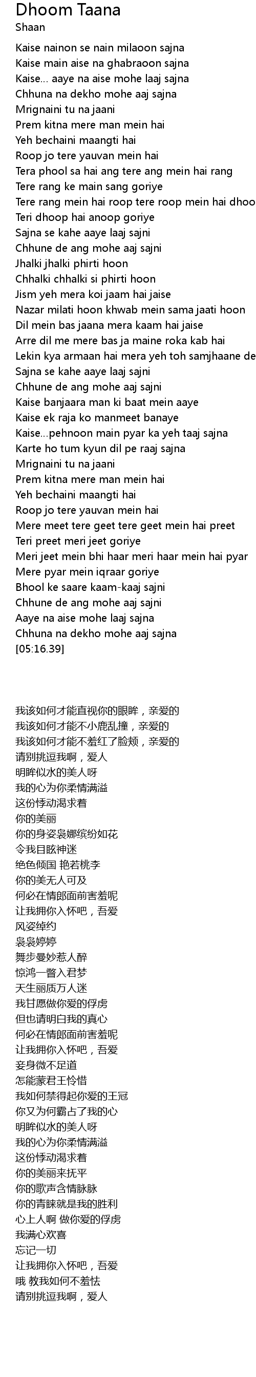 | [05:11.96] | Chhuna na dekho mohe aaj sajna |