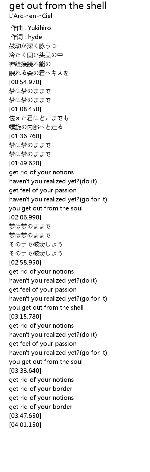 | [03:13.680] | you get out from the shell |