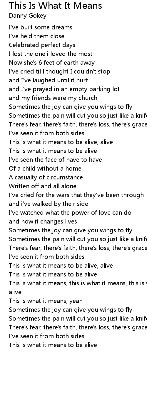 This is what it means, this is what it means, this is what it means to be alive, alive. |