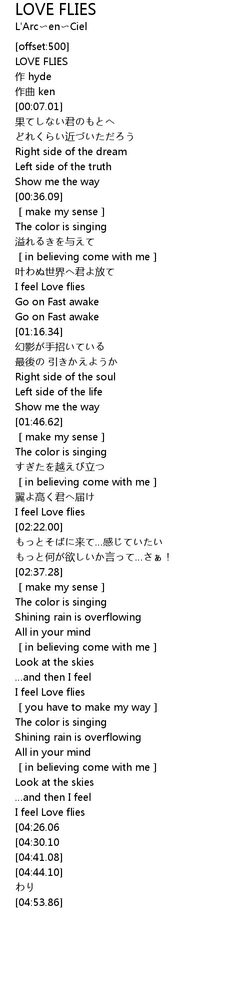 | [04:37.83][04:30.10][04:22.13][04:14.20] | Go on Fast awake |